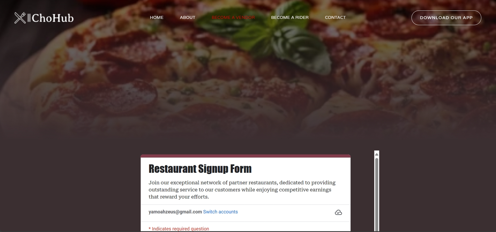 In Ghana’s evolving digital food delivery market, ChoHub takes center stage, streamlining meal access by connecting users with a wide network of local vendors. The website is designed with flexibility in mind, allowing users to place orders for delivery, takeout, or make reservations, fostering a convenient, accessible experience. Local vendors are encouraged to register, expanding their reach and visibility, while the platform remains highly intuitive, catering to both students and general users alike.