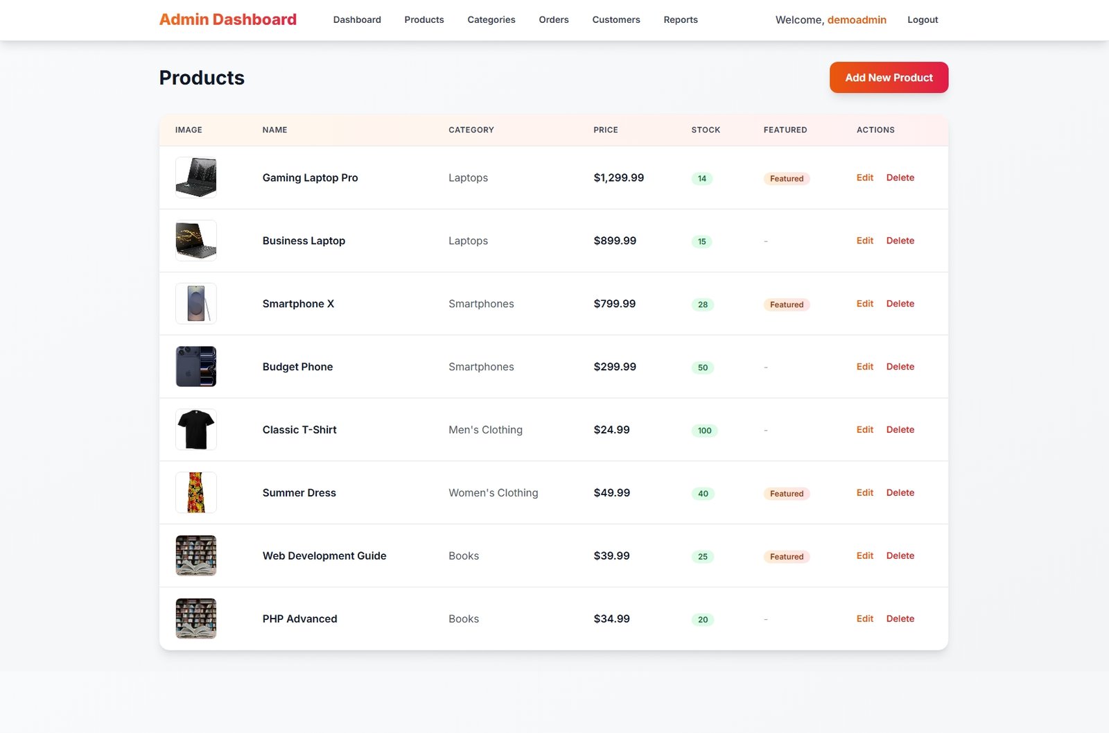 The E-Commerce Platform represents a comprehensive web-based e-commerce solution built with PHP and MySQL, designed specifically for modern online retail operations. This platform serves as both a customer-facing storefront and an administrative management system, enabling businesses to manage products, process orders, track inventory, and analyze sales effectively. Businesses can seamlessly manage their online store while providing intuitive shopping experiences for customers.